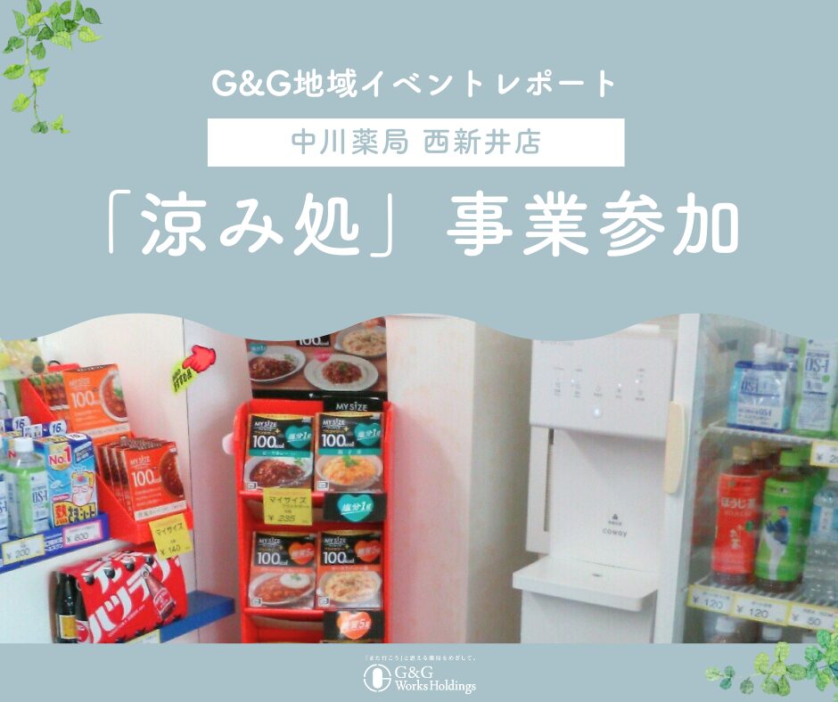 本活動は、猛暑による健康被害の予防を目的として、東京都足立区が推進する「涼み処」事業の一環として実施されました。冷房の効いた薬局内を地域住民に開放し、外出時の一時休憩所として提供しました。来局者には冷水の提供を行い、さらに冷感タオルを配布することで、熱中症予防への意識向上を図りました。処方箋の有無に関わらず、休憩目的で来局される方も増え、地域における薬局の役割が広がる取り組みとなりました。