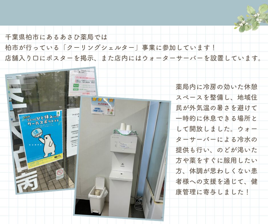 あさひ薬局「柏市における『クールスポット・クーリングシェルター』開設」実施について