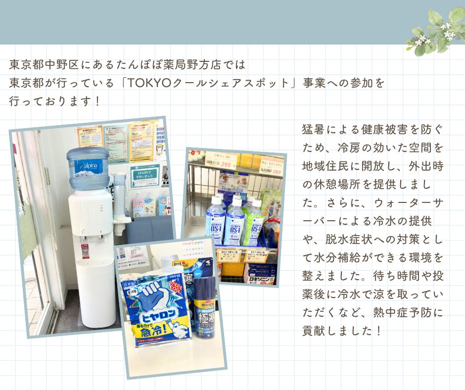 たんぽぽ薬局野方店「TOKYO クールシェアスポット」参加について