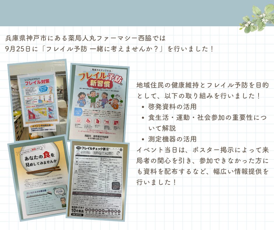 《地域イベントレポート》 薬局人丸ファーマシー西脇「フレイル予防 一緒に考えませんか?」実施