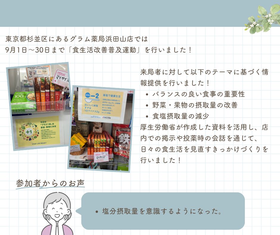 グラム薬局 浜田山店「食生活改善普及運動」実施について