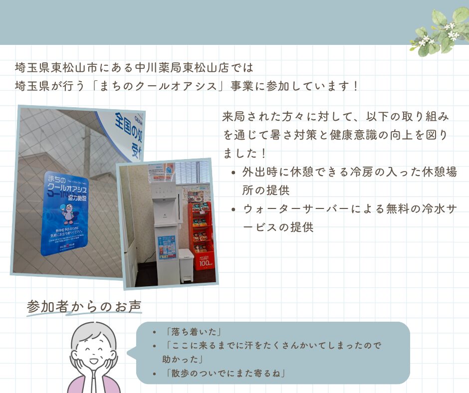 中川薬局東松山店「まちのクールオアシス」実施について