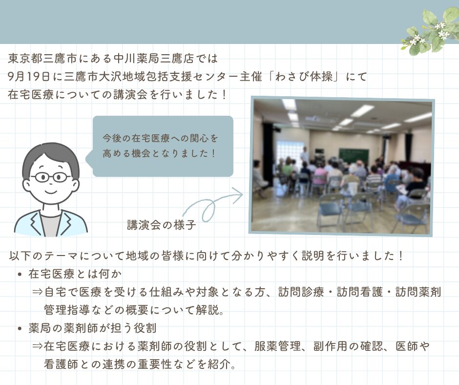 中川薬局三鷹店「在宅医療講演会」参加について