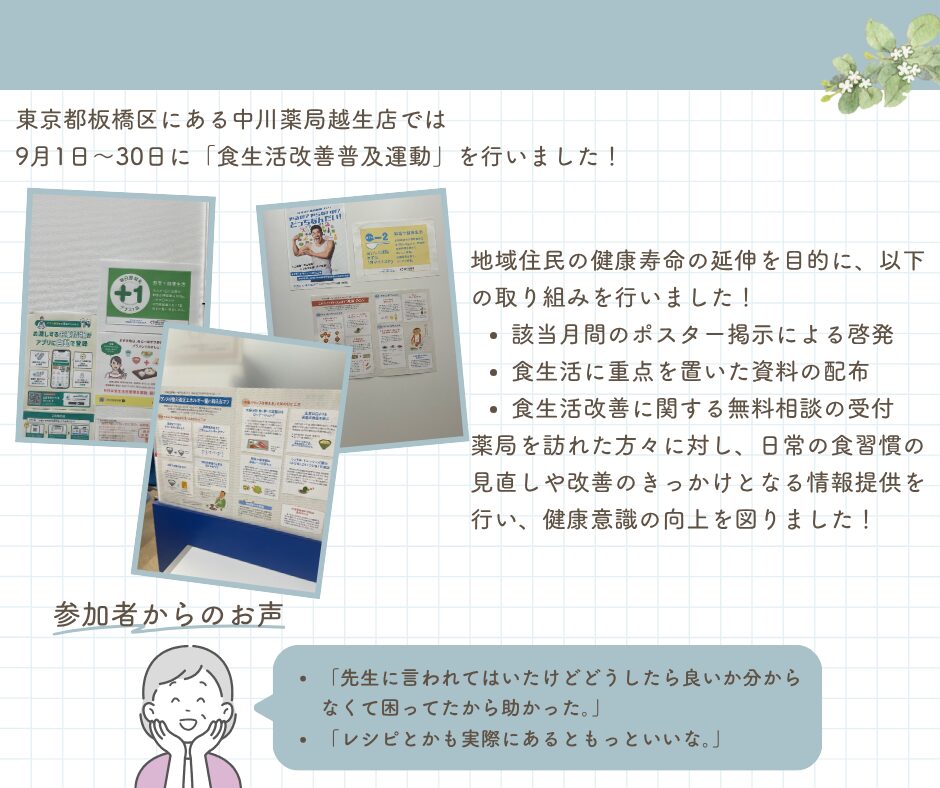 《地域イベントレポート》 中川薬局 高島平店 食生活改善普及運動の実施