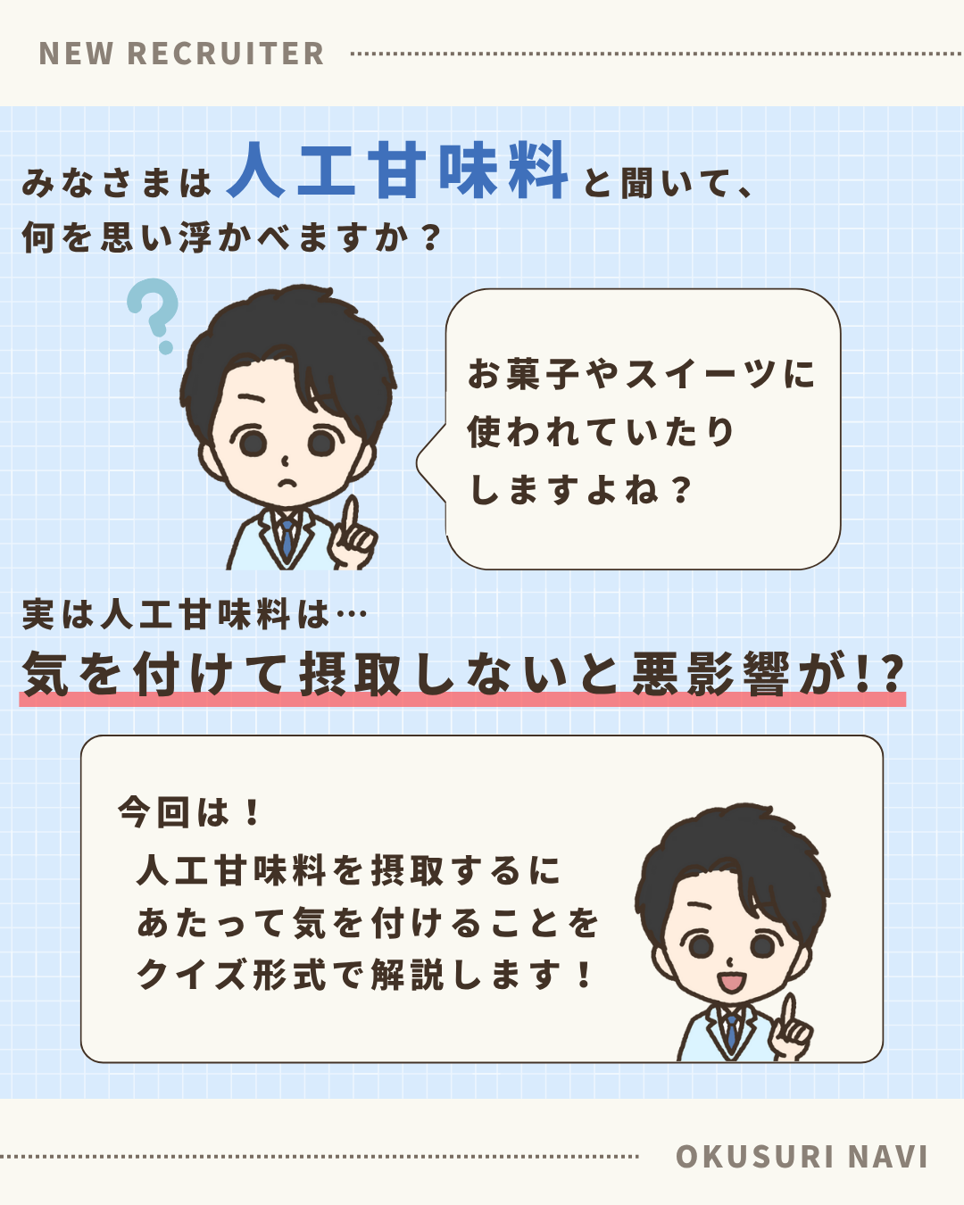 今回は、人工甘味料を摂取する際に気を付けたいポイントを、クイズ形式で楽しく学んでいきましょう!