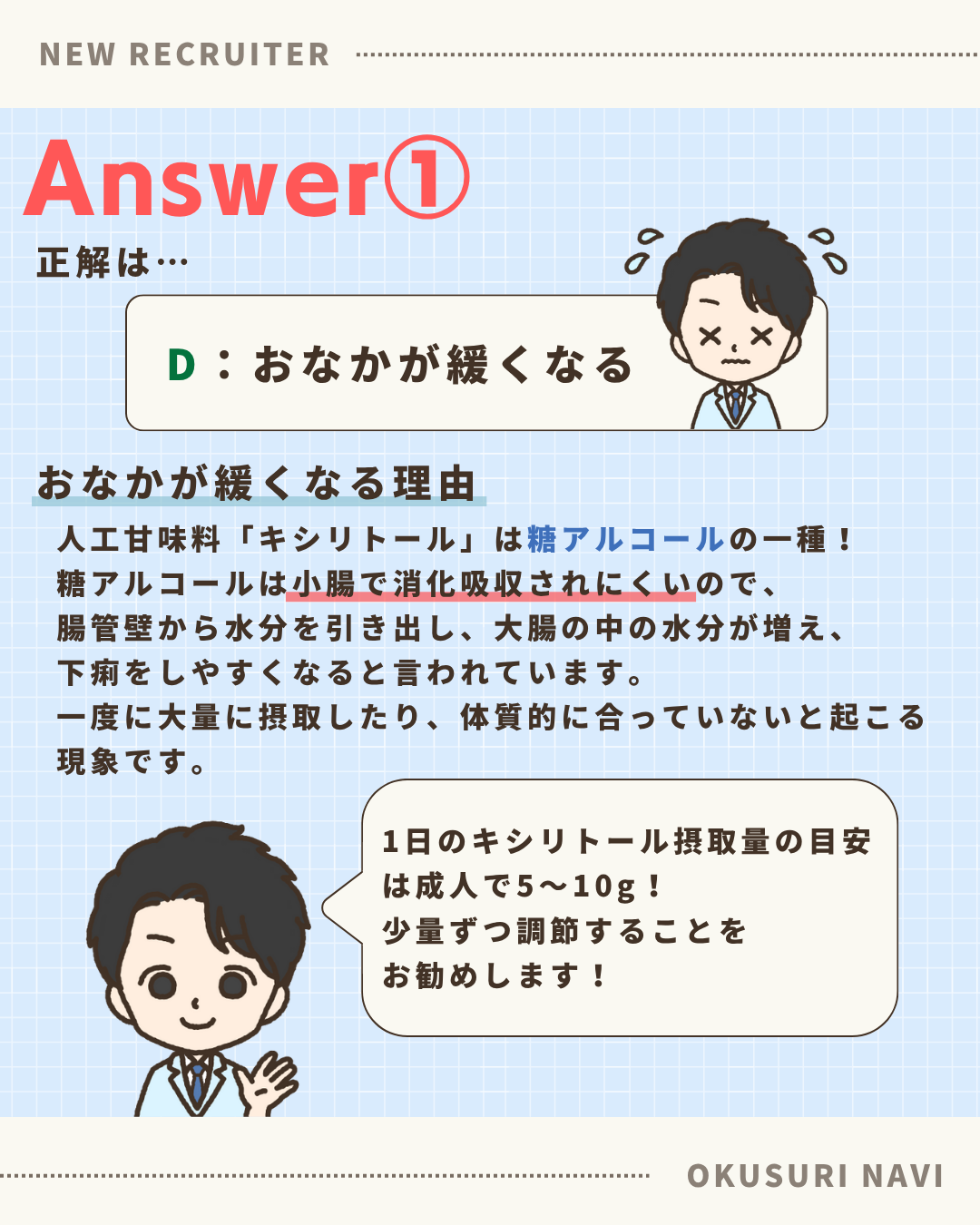 正解は… C:アスパルテームが含まれていてフェニルケトン尿症の人には危険だから!