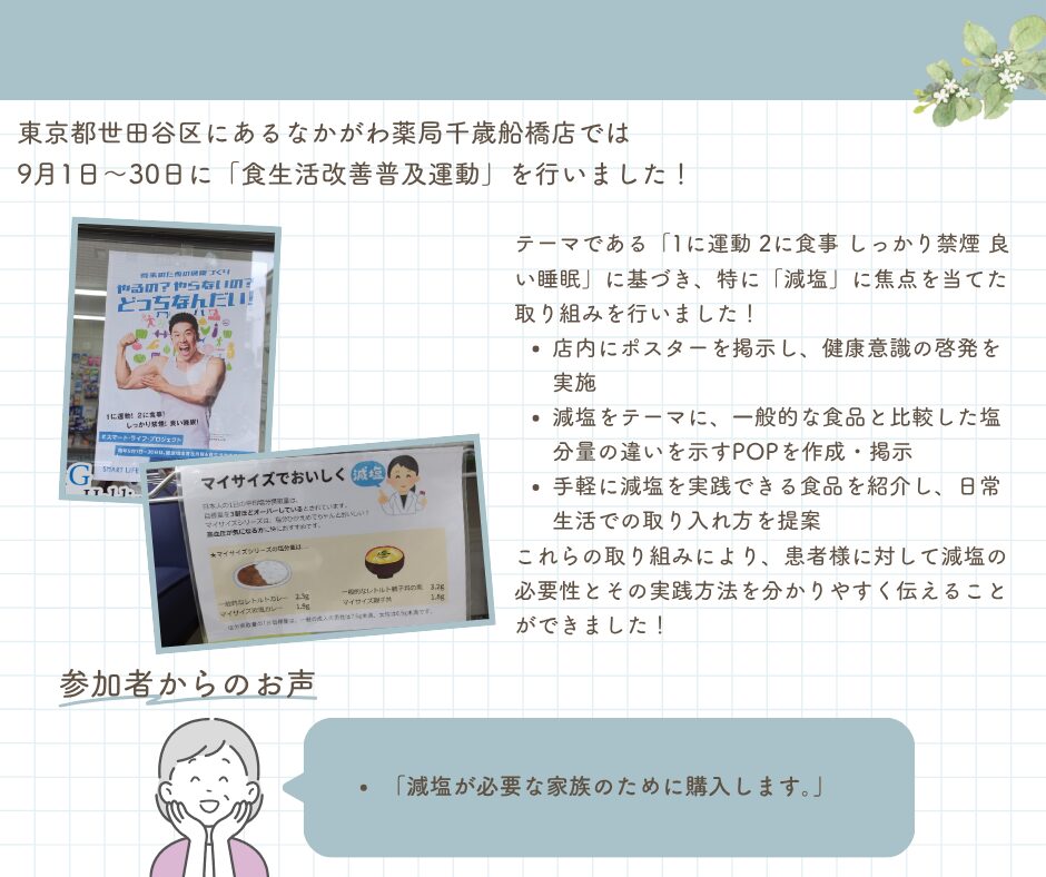 なかがわ薬局千歳船橋店「食生活改善普及運動」実施について