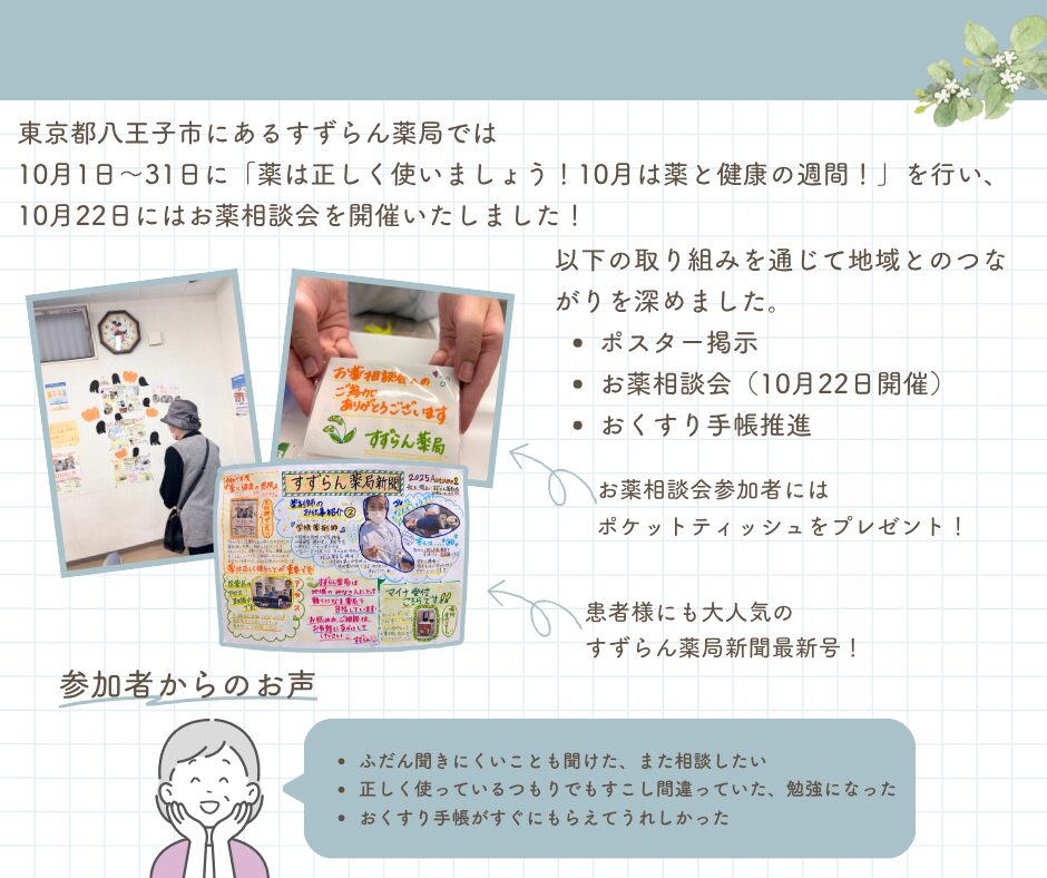 《地域イベントレポート》 コスモファーマシーすずらん薬局 「薬は正しく使いましょう!10月は薬と健康の週間!」の実施