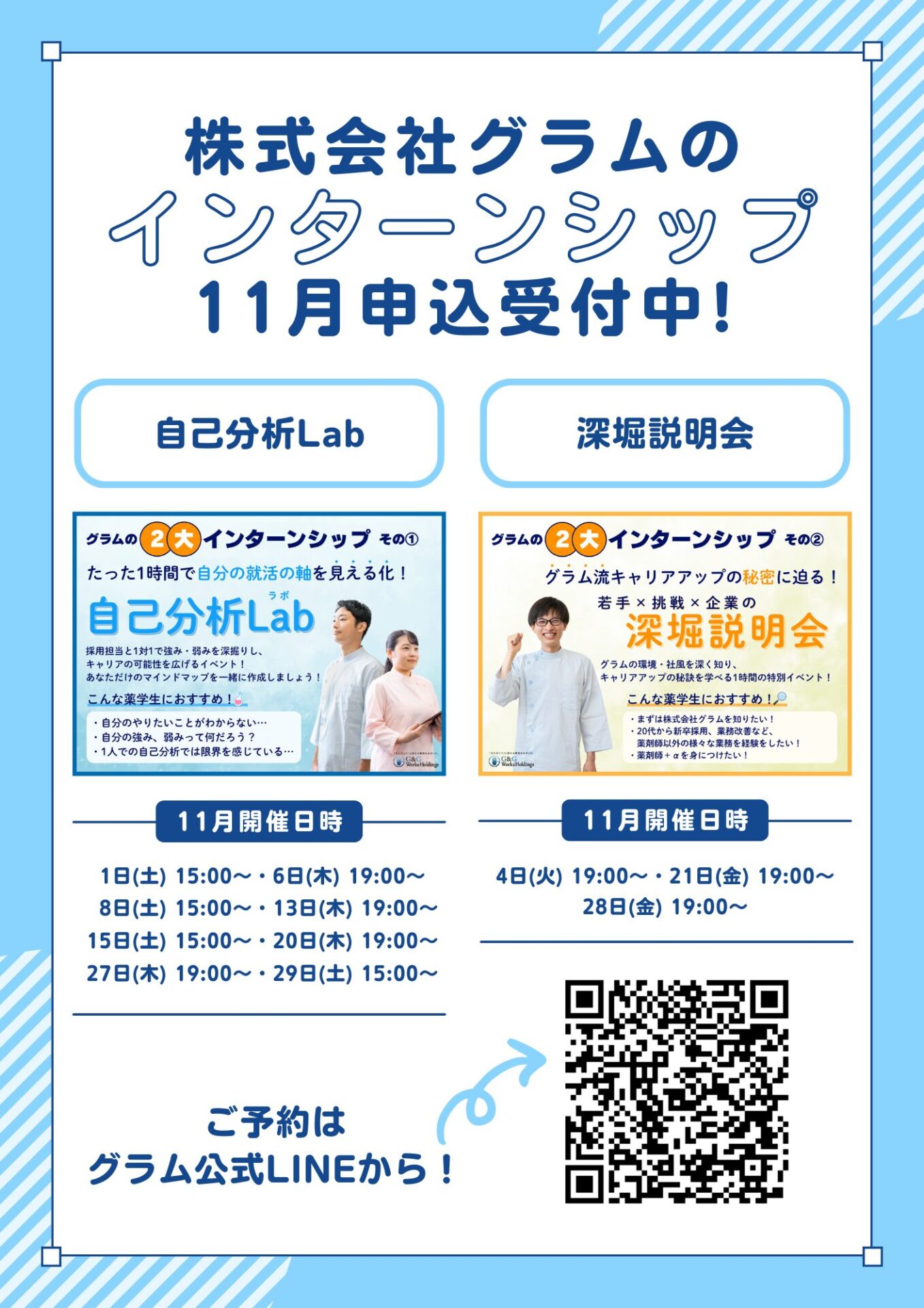 🌟薬学生必見!株式会社グラムの11月インターンシップ受付スタート!🌟