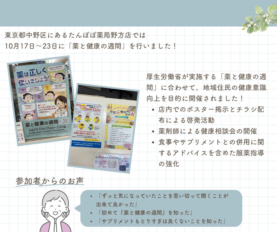 《地域イベントレポート》 たんぽぽ薬局 野方店 薬と健康の週間の実施