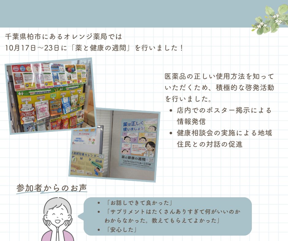 《地域イベントレポート》 オレンジ薬局 薬と健康の週間の実施
