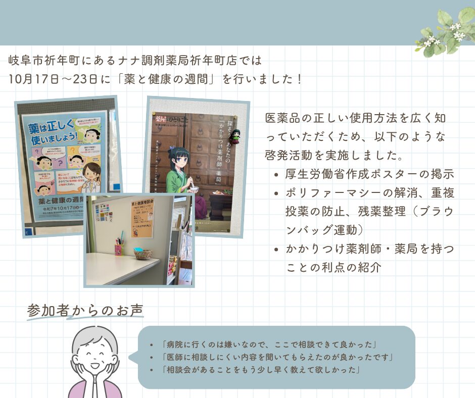 ナナ調剤薬局祈年町店「薬と健康の週間」実施について