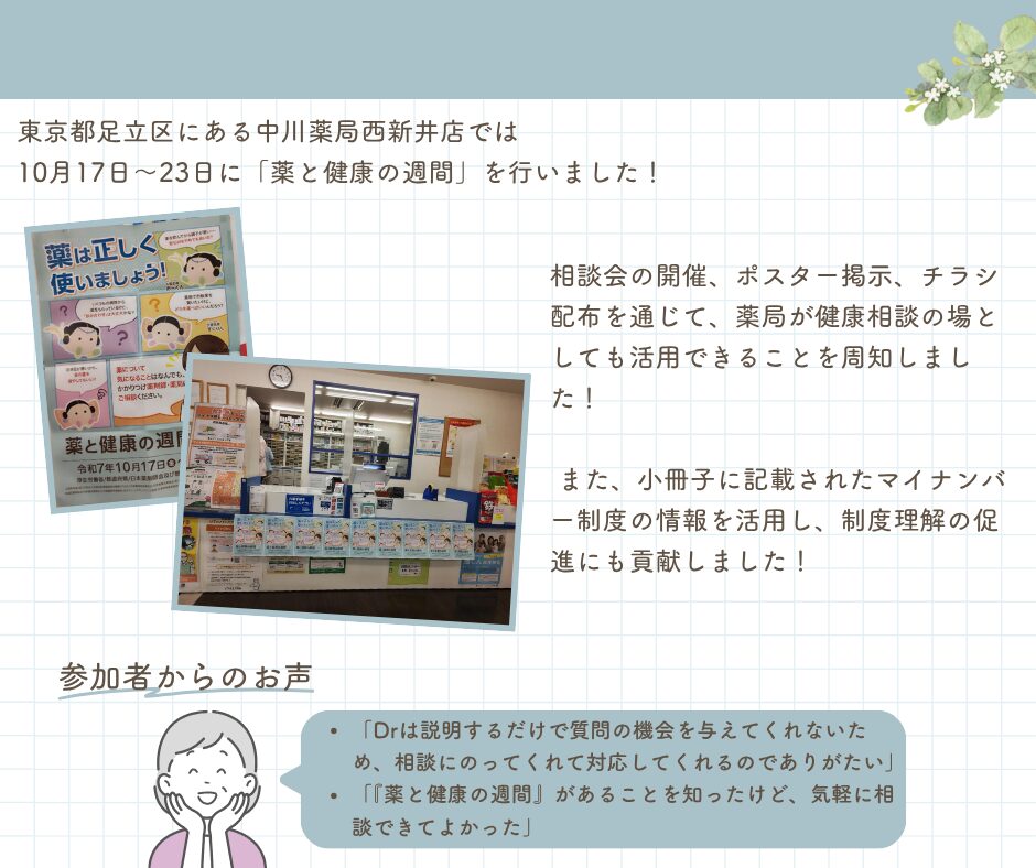 《地域イベントレポート》 中川薬局 西新井店 薬と健康の週間の実施