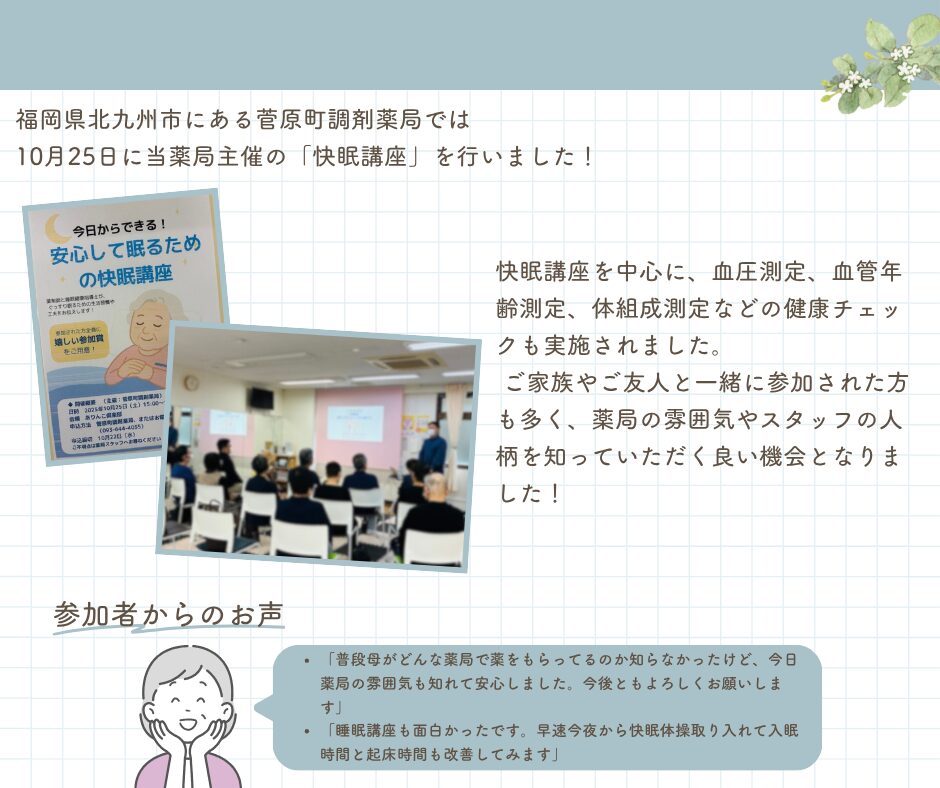 《地域イベントレポート》 菅原町調剤薬局 快眠講座の実施