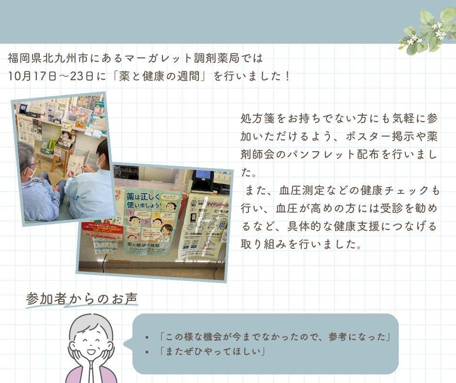 《地域イベントレポート》 マーガレット調剤薬局 薬と健康の週間の実施