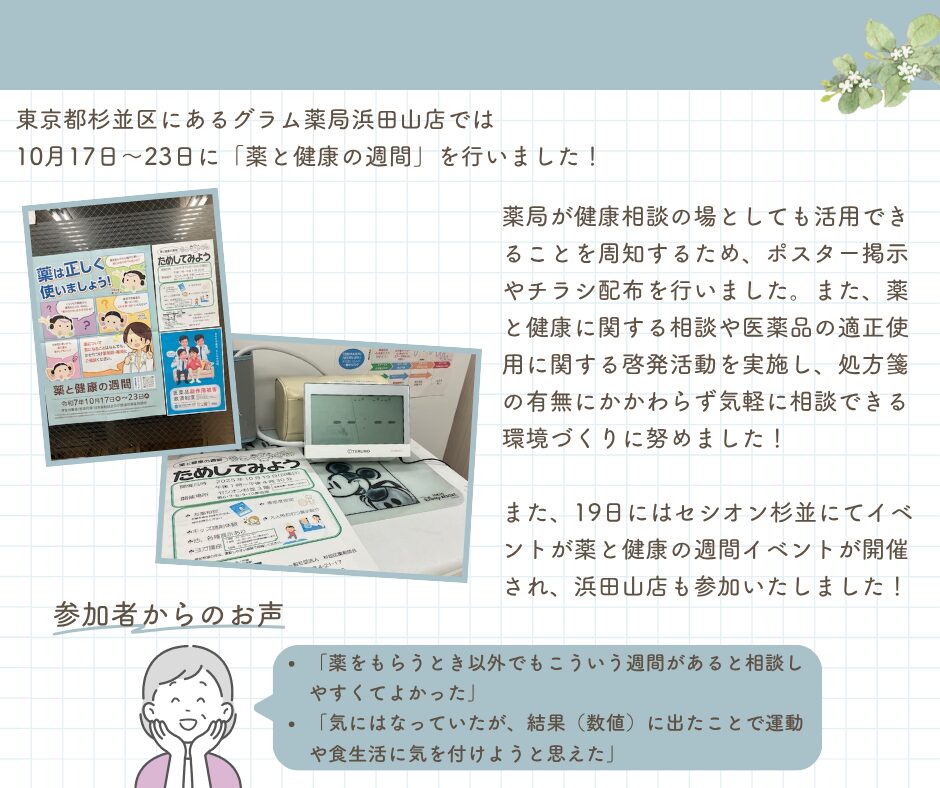 グラム薬局 浜田山店「薬と健康の週間」実施について