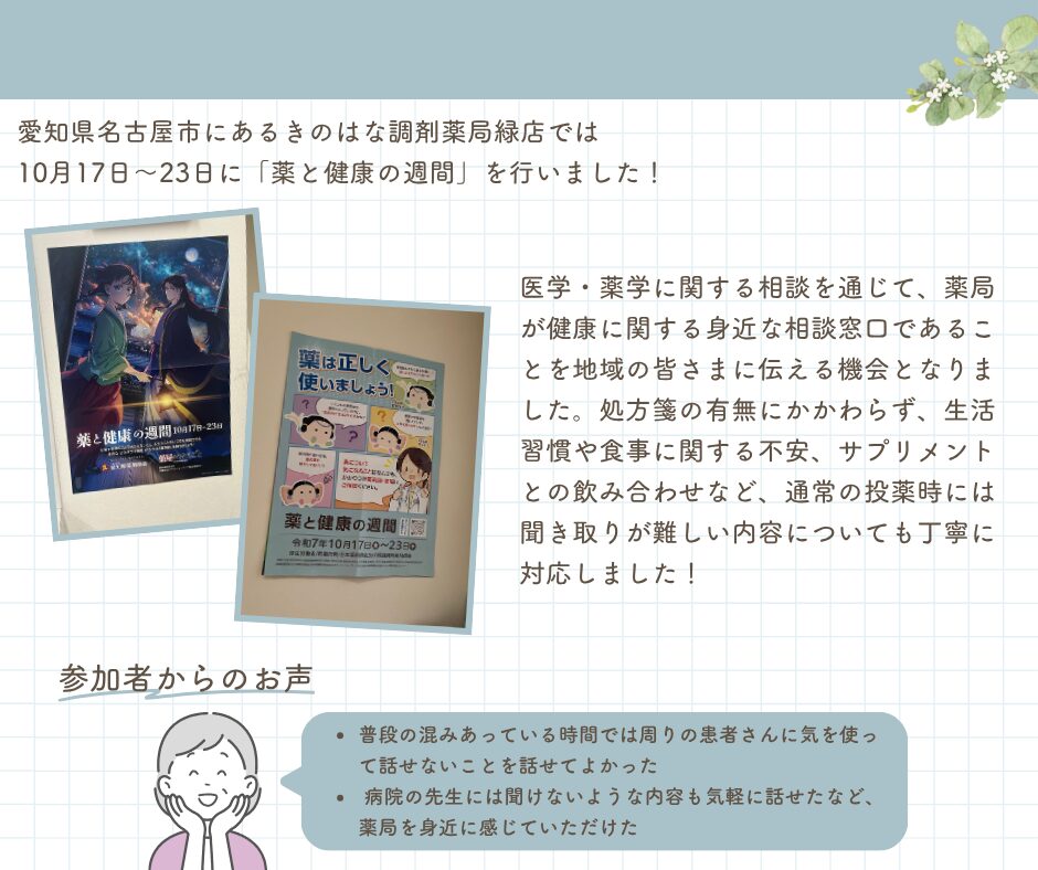 《地域イベントレポート》 きのはな調剤薬局 緑店 薬と健康の週間の実施