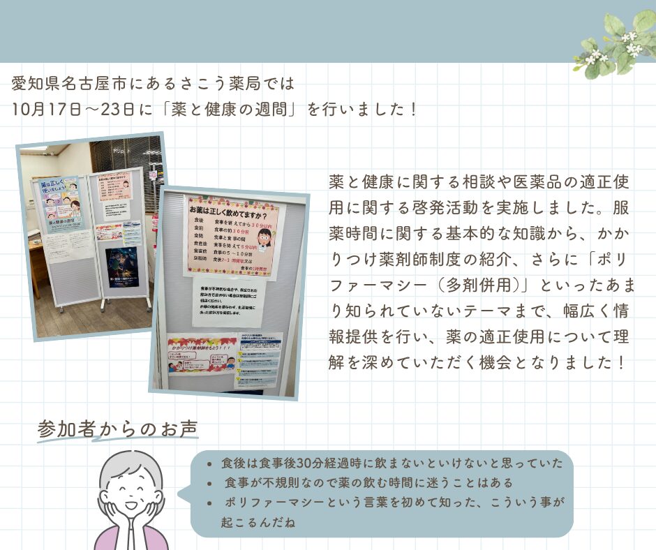 《地域イベントレポート》 さこう薬局 薬と健康の週間の実施