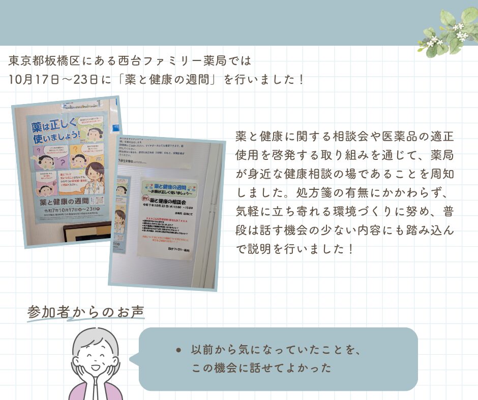 《地域イベントレポート》 西台ファミリー薬局 薬と健康の週間の実施