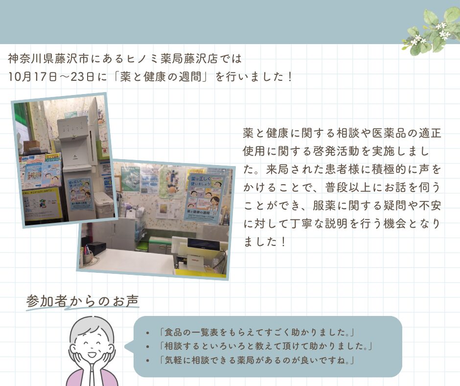 ヒノミ薬局 藤沢店「薬と健康の週間」実施について