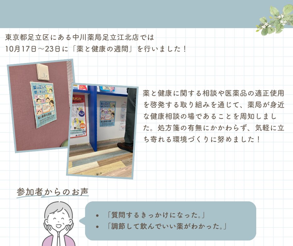 《地域イベントレポート》 中川薬局 足立江北店 薬と健康の週間の実施