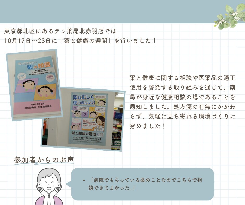 《地域イベントレポート》 テン薬局 北赤羽店 薬と健康の週間の実施