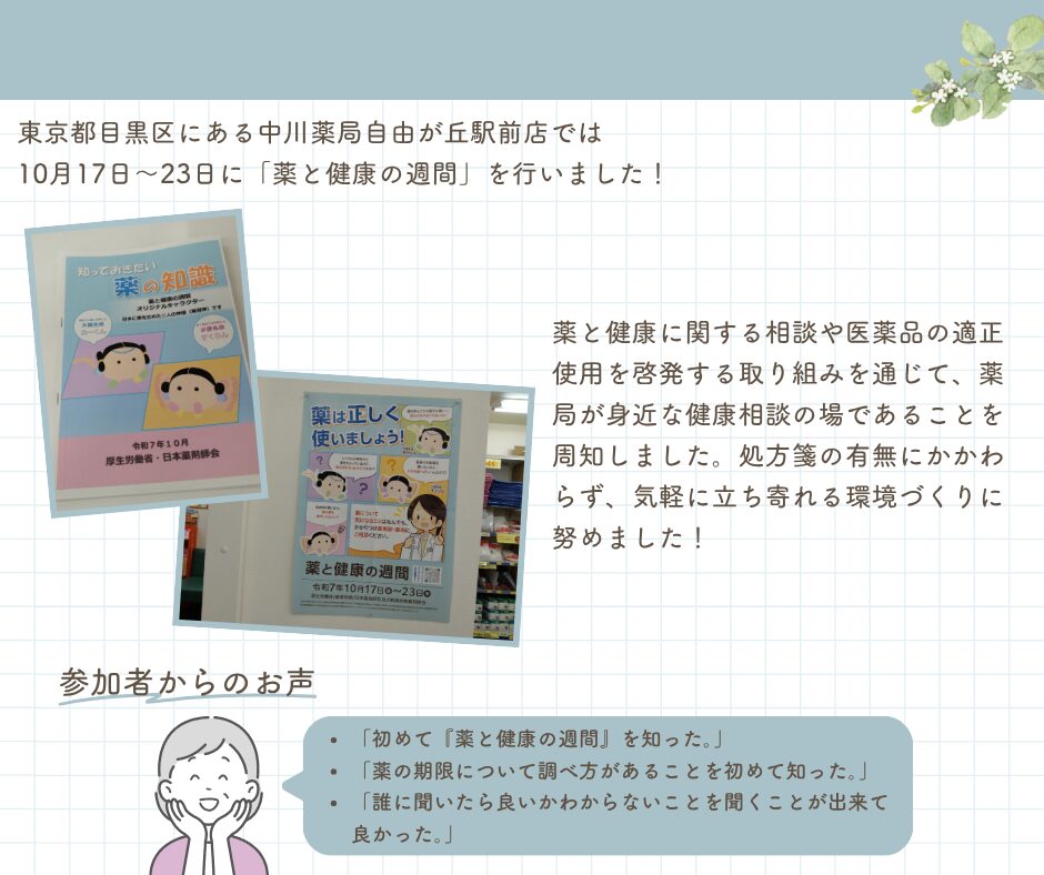 《地域イベントレポート》 中川薬局 自由が丘駅前店 薬と健康の週間の実施