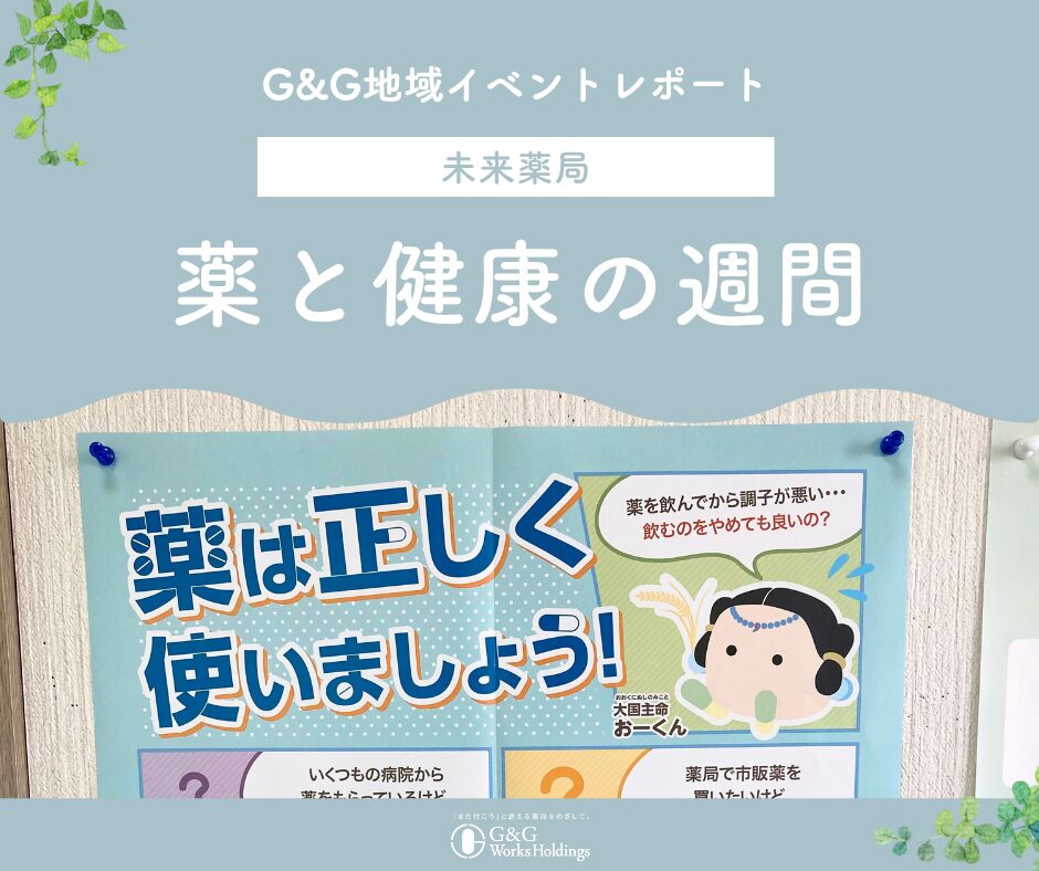未来薬局では、薬と健康に関する相談会や医薬品の啓発活動を実施し、薬局が地域の健康支援拠点としての役割を果たすことを目指しました。