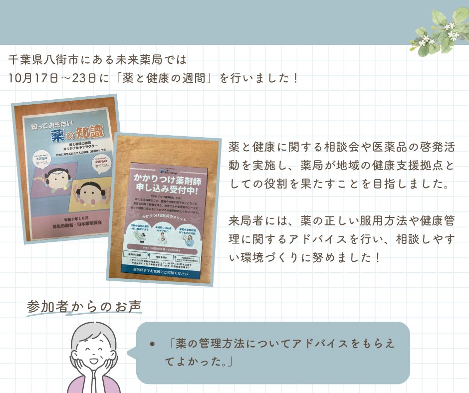 未来薬局「薬と健康の週間」実施について