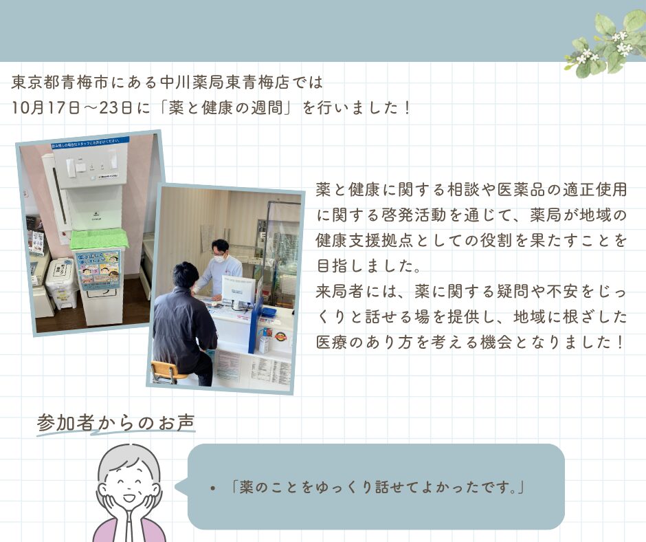 《地域イベントレポート》 中川薬局 東青梅店 薬と健康の週間の実施
