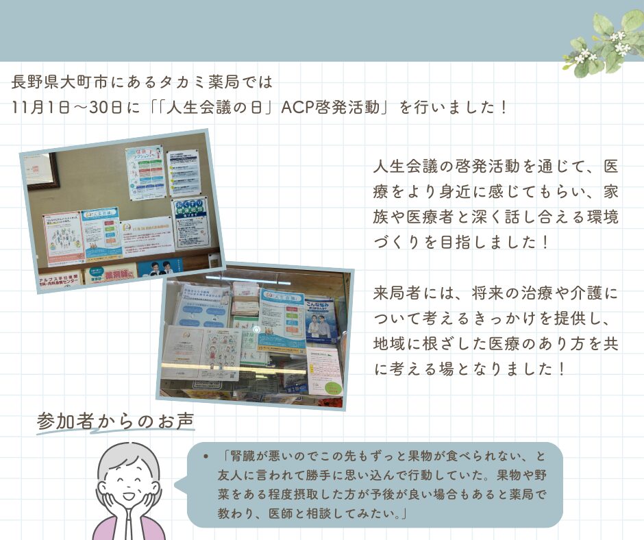 《地域イベントレポート》 タカミ薬局 「人生会議の日」ACP啓発活動の実施