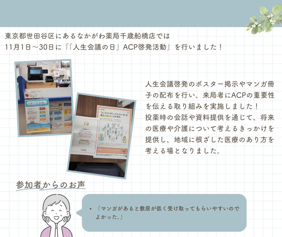 《地域イベントレポート》 なかがわ薬局 千歳船橋店 「人生会議の日」ACP啓発活動の実施