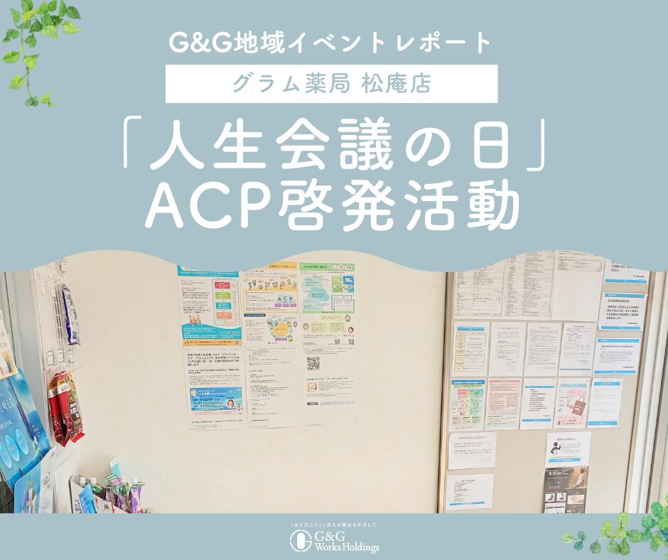 グラム薬局松庵店では、人生会議啓発のポスター掲示やACPに関する資材提供を行い、来局者に将来の医療や介護について考えるきっかけを提供しました。地域に根ざした医療のあり方を考える場として、患者様やご家族にとって大切なテーマを共有する機会となりました。