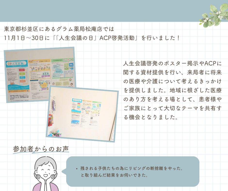 グラム薬局松庵店「人生会議の日」ACP啓発活動 実施について