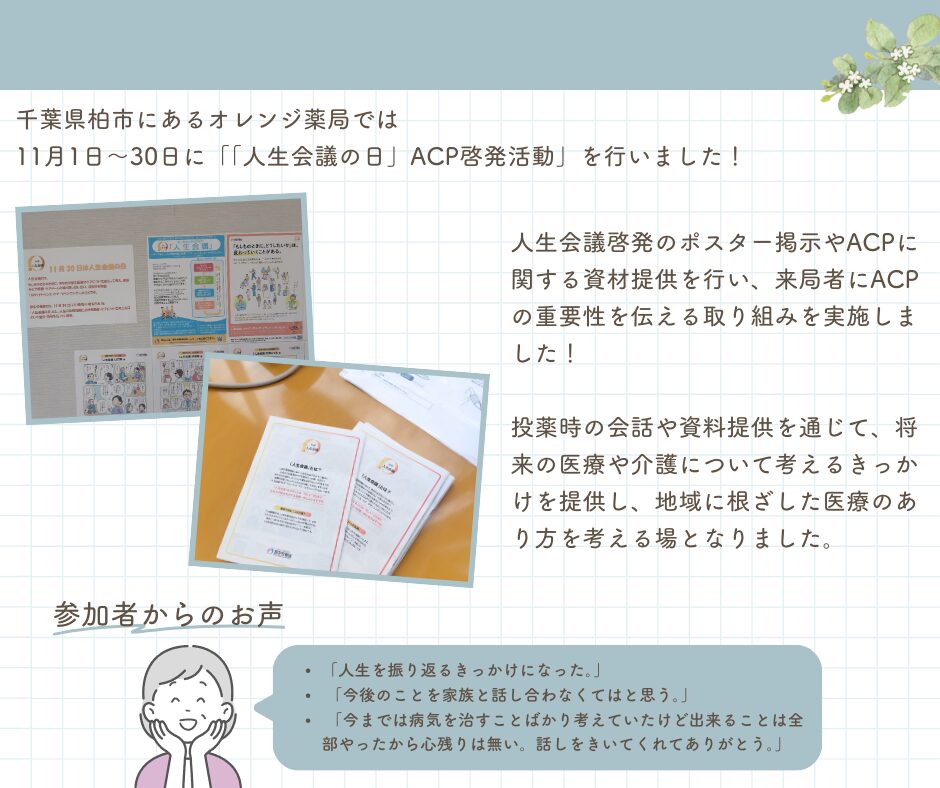 《地域イベントレポート》 オレンジ薬局 「人生会議の日」ACP啓発活動の実施
