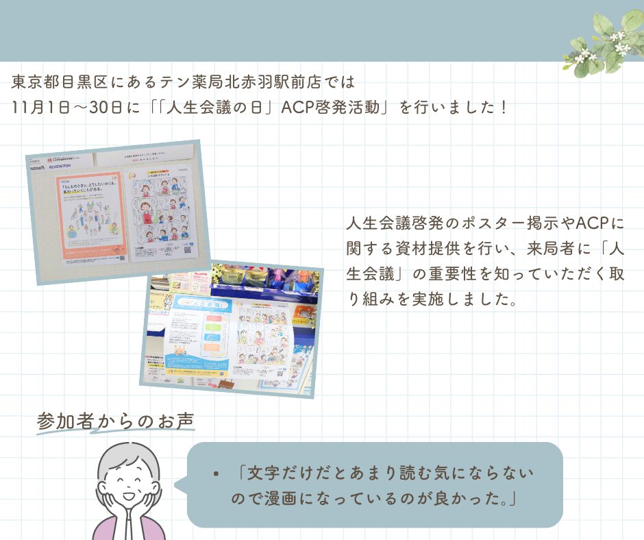 《地域イベントレポート》 ヒノミ薬局 都立大学店 「人生会議」ACP啓発活動の実施