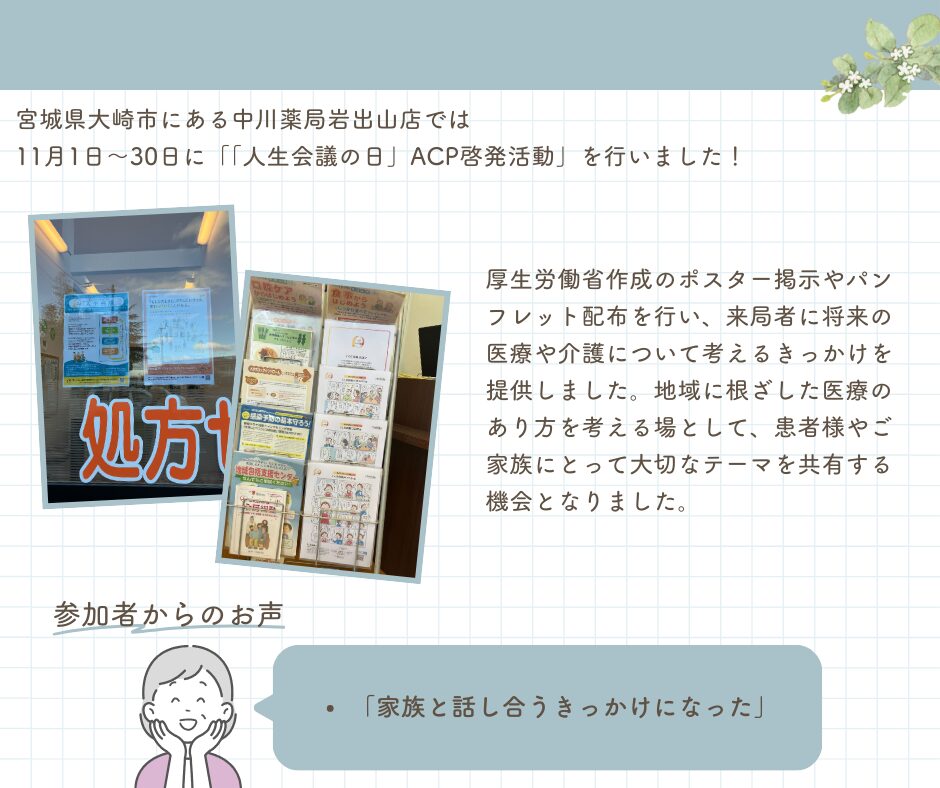中川薬局 岩出山店「人生会議の日」ACP啓発活動 実施について