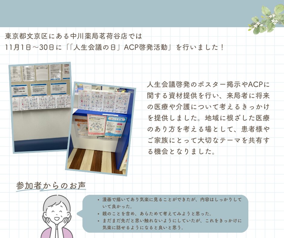 《地域イベントレポート》 中川薬局 茗荷谷店 「人生会議」ACP啓発活動の実施