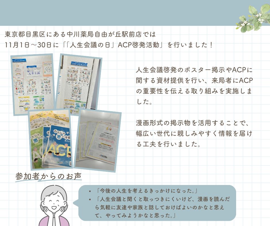 中川薬局 自由が丘駅前店「人生会議の日」ACP啓発活動 実施について