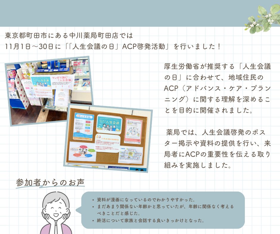中川薬局 町田店「人生会議の日」ACP啓発活動 実施について