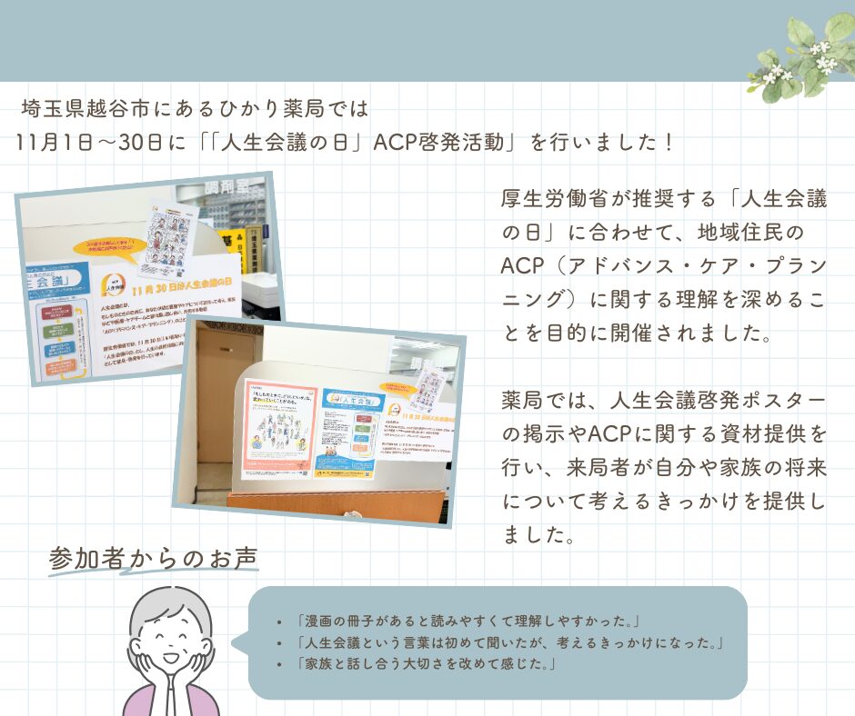 《地域イベントレポート》 ひかり薬局 「人生会議」ACP啓発活動の実施