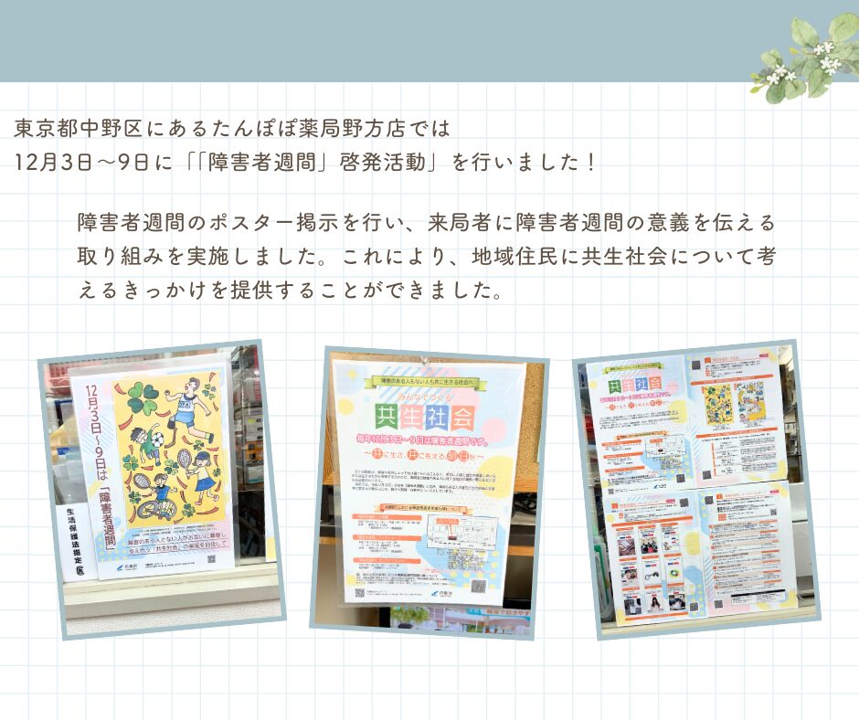 《地域イベントレポート》 たんぽぽ薬局 野方店 「障害者週間」啓発活動の実施