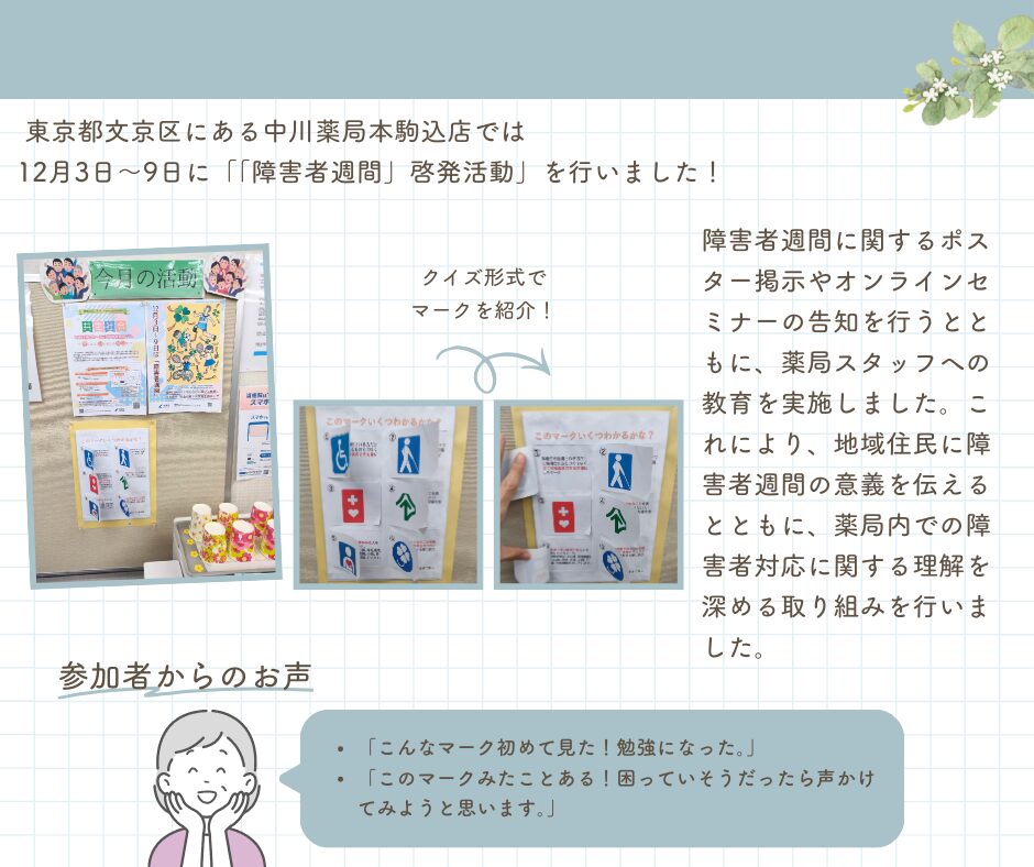 中川薬局 本駒込店「障害者週間」啓発活動 実施について