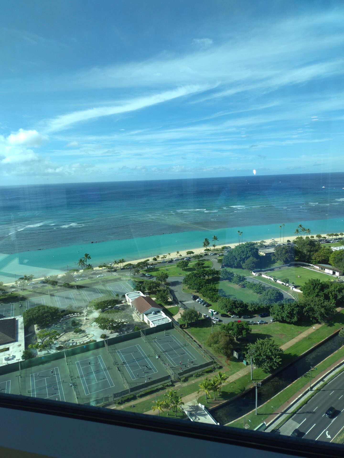 会社の保養所はとても見晴らし良く海が良く見え、ワイキキビーチ、ダイアモンドヘッドが遠くにあり素晴らしかったです。私は長旅の疲れやなれないお酒で体調を崩し2日早く帰国いたしました。