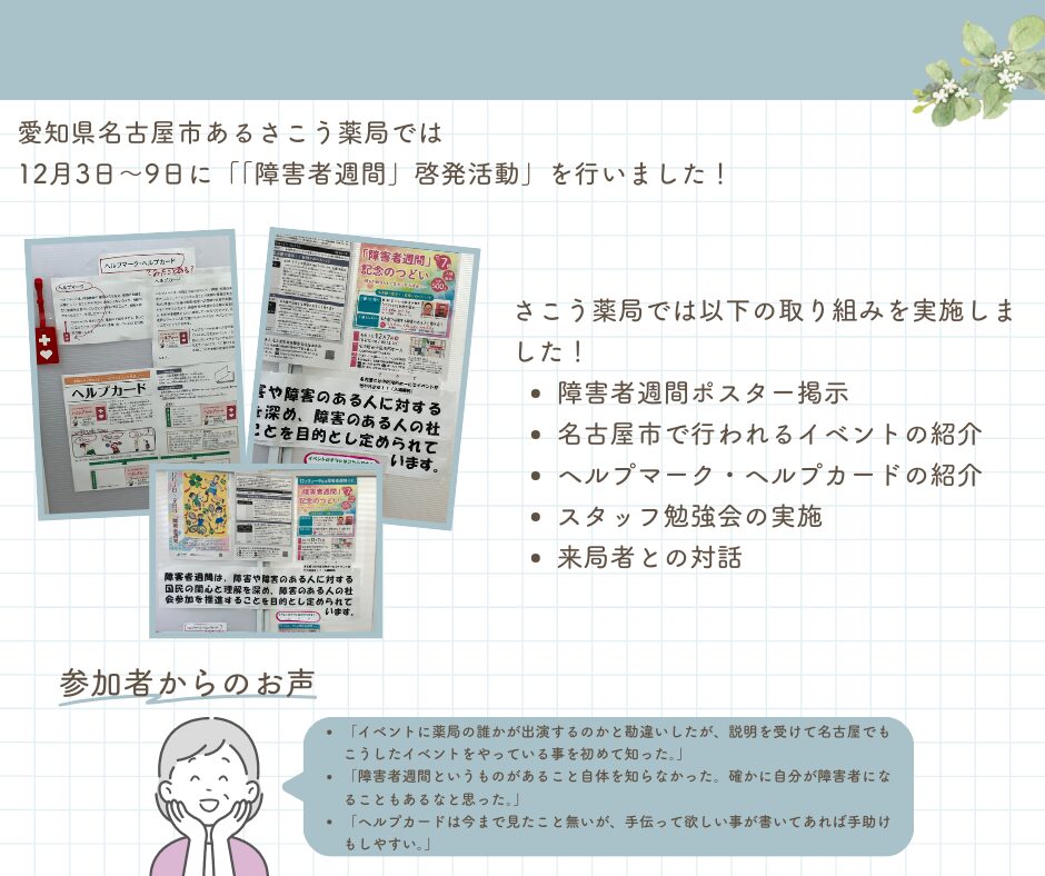 《地域イベントレポート》 さこう薬局 「障害者週間」啓発活動の実施