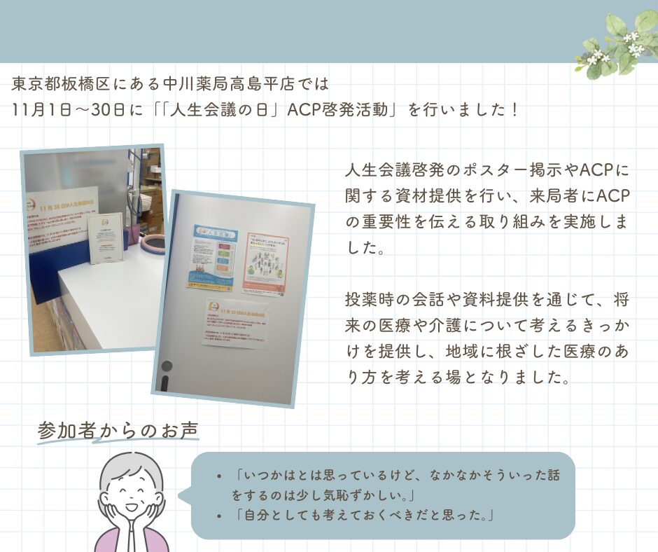 中川薬局 高島平店「人生会議の日」ACP啓発活動 実施について