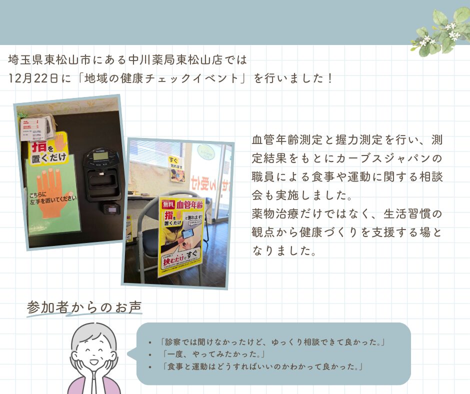 《地域イベントレポート》 中川薬局 東松山店 地域の健康チェックイベントの実施