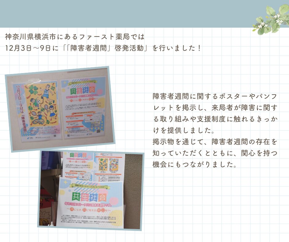 《地域イベントレポート》 ファースト薬局 「障害者週間」啓発活動の実施