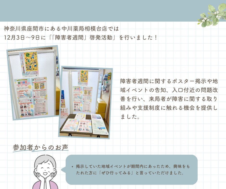 《地域イベントレポート》 中川薬局 相模台店 「障害者週間」啓発活動の実施