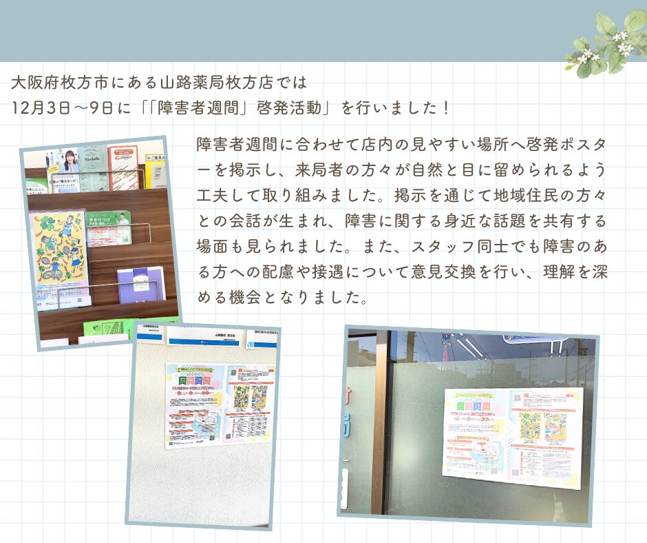 《地域イベントレポート》 山路薬局 枚方店 「障害者週間」啓発活動の実施
